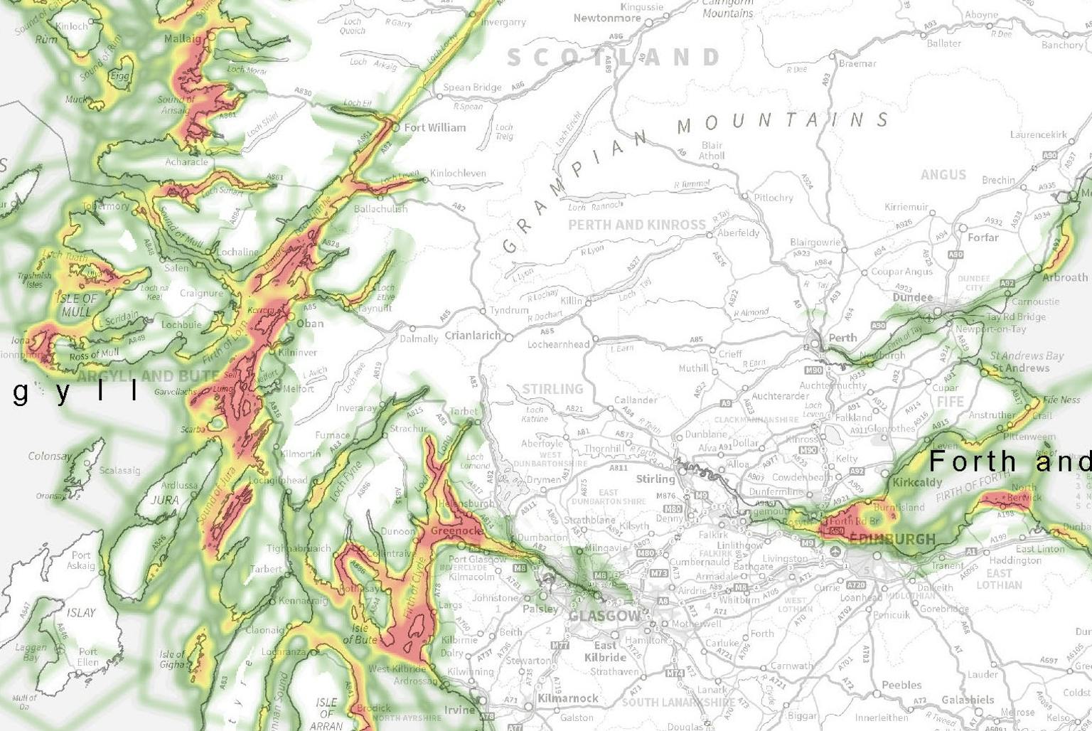 GIS has been central to delivering these exciting projects where we’ve used interactive web mapping tools to collect spatial data. The data collected results in a suite of heat maps identifying areas of intense activity around Scotland’s coastline.